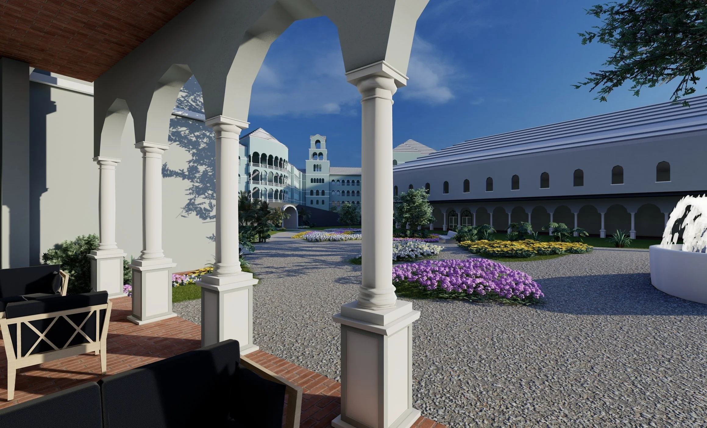 Inspired by classical form and native life, the resort embraces the juxtaposition of the formal and relaxed aspects of Bermudan culture. The design concept showcases these ideals through embracing Italianate architecture of the Island, paired with relaxed, colorful, Caribbean-inspired interiors that feature the classical interior architectural details of the exterior.
