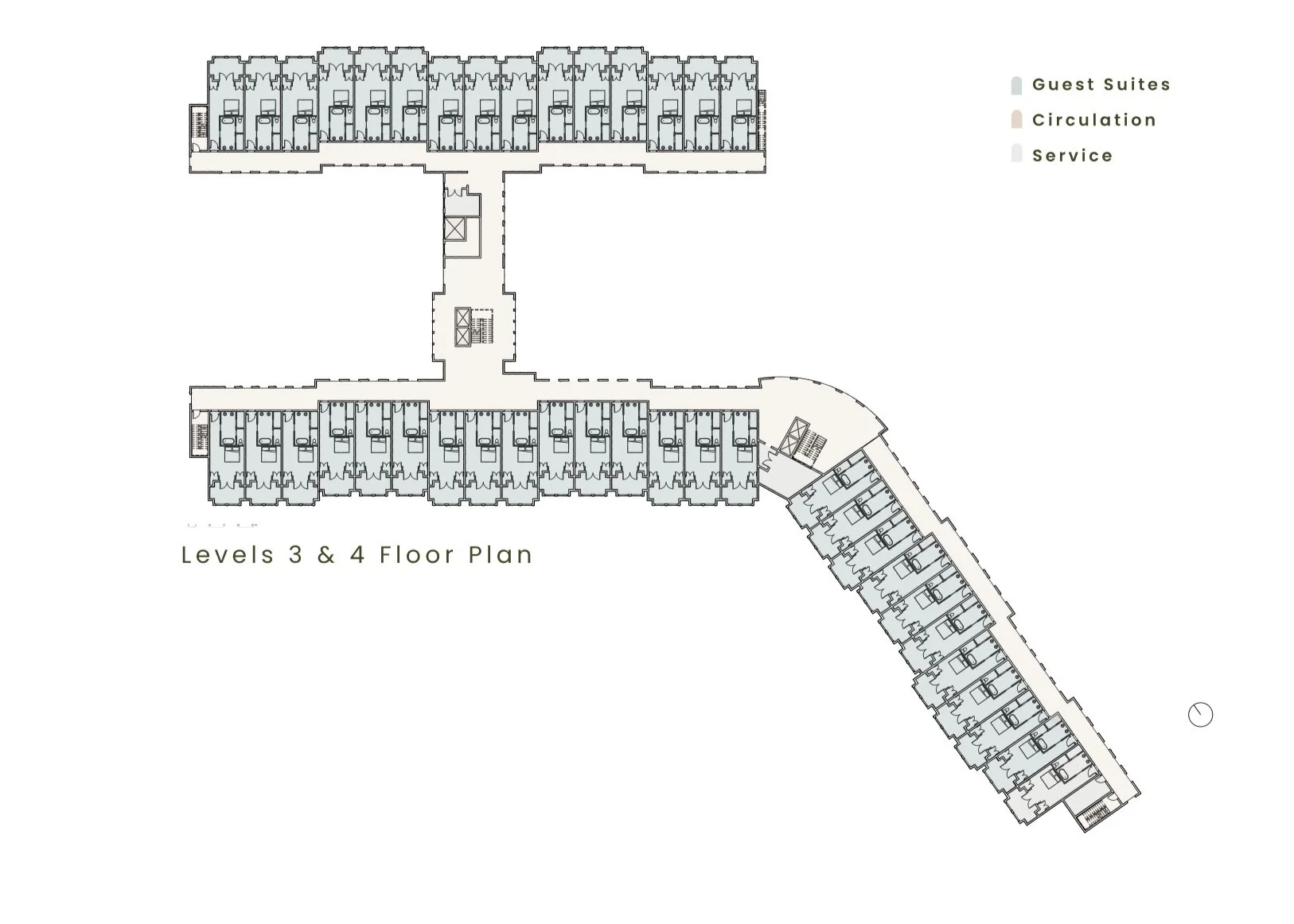 The resort is organized along the cross axes of the site, leading to the cliffs in the west and the beach in the east. The resort embraces the village style and aims to recreate the quaint streets of St. George by providing an active public outdoor space for guests circulation of the resort.